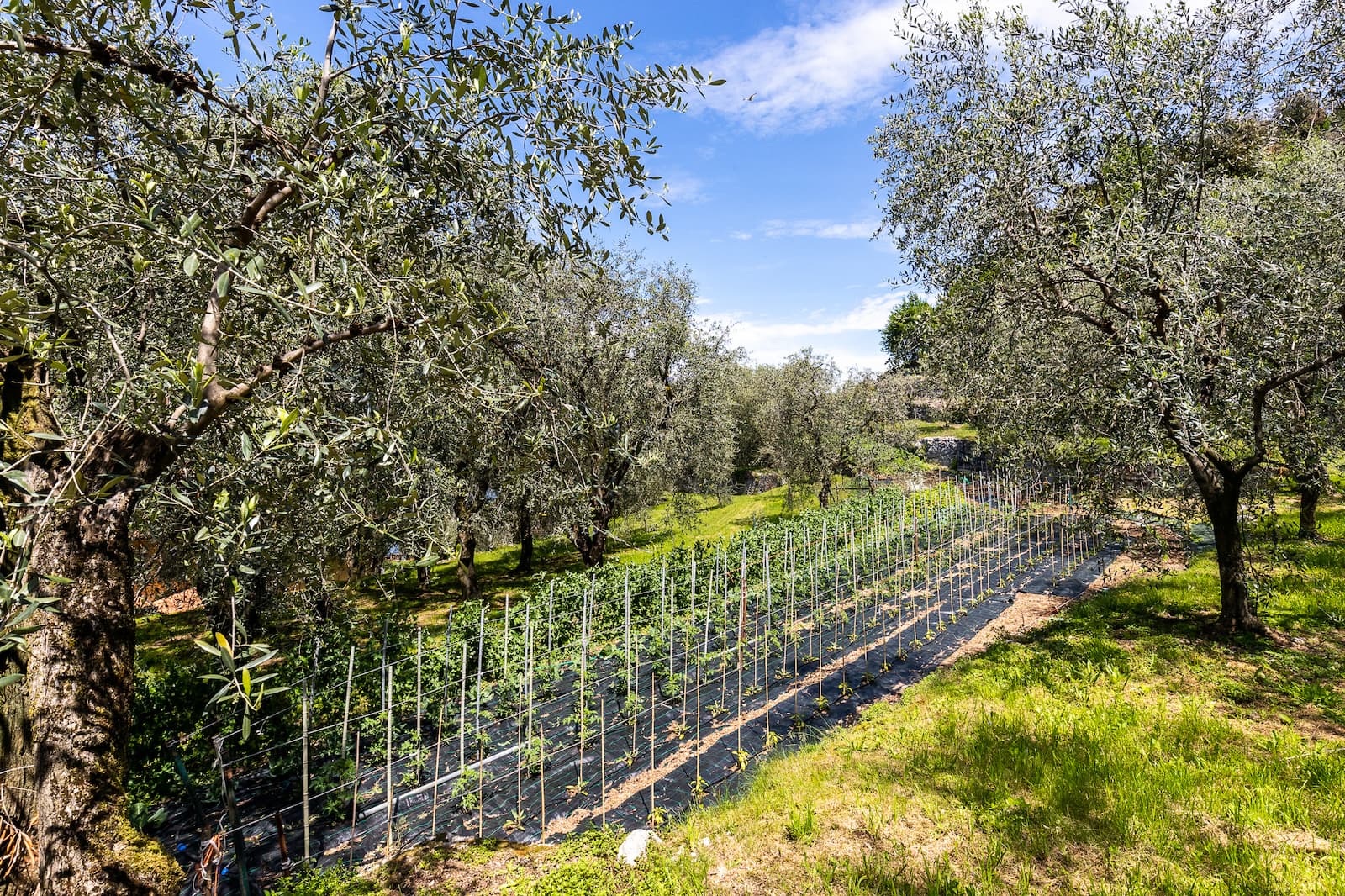 Oltre al giardino c’è anche un balcone per godere delle brezza che gioca tra le foglie d’olivo, o del sole, dipende dal momento.