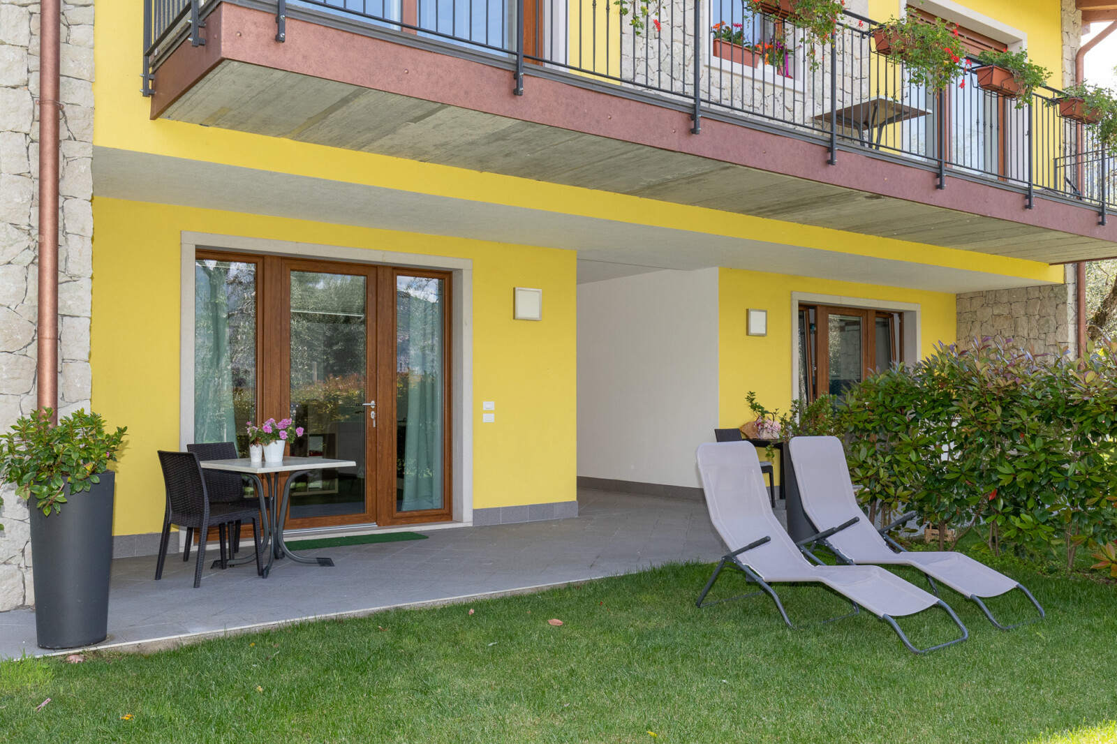 C’è un giardino che contorna entrambe le costruzioni dove sorgono gli appartamenti e profuma di erbe e di fiori.