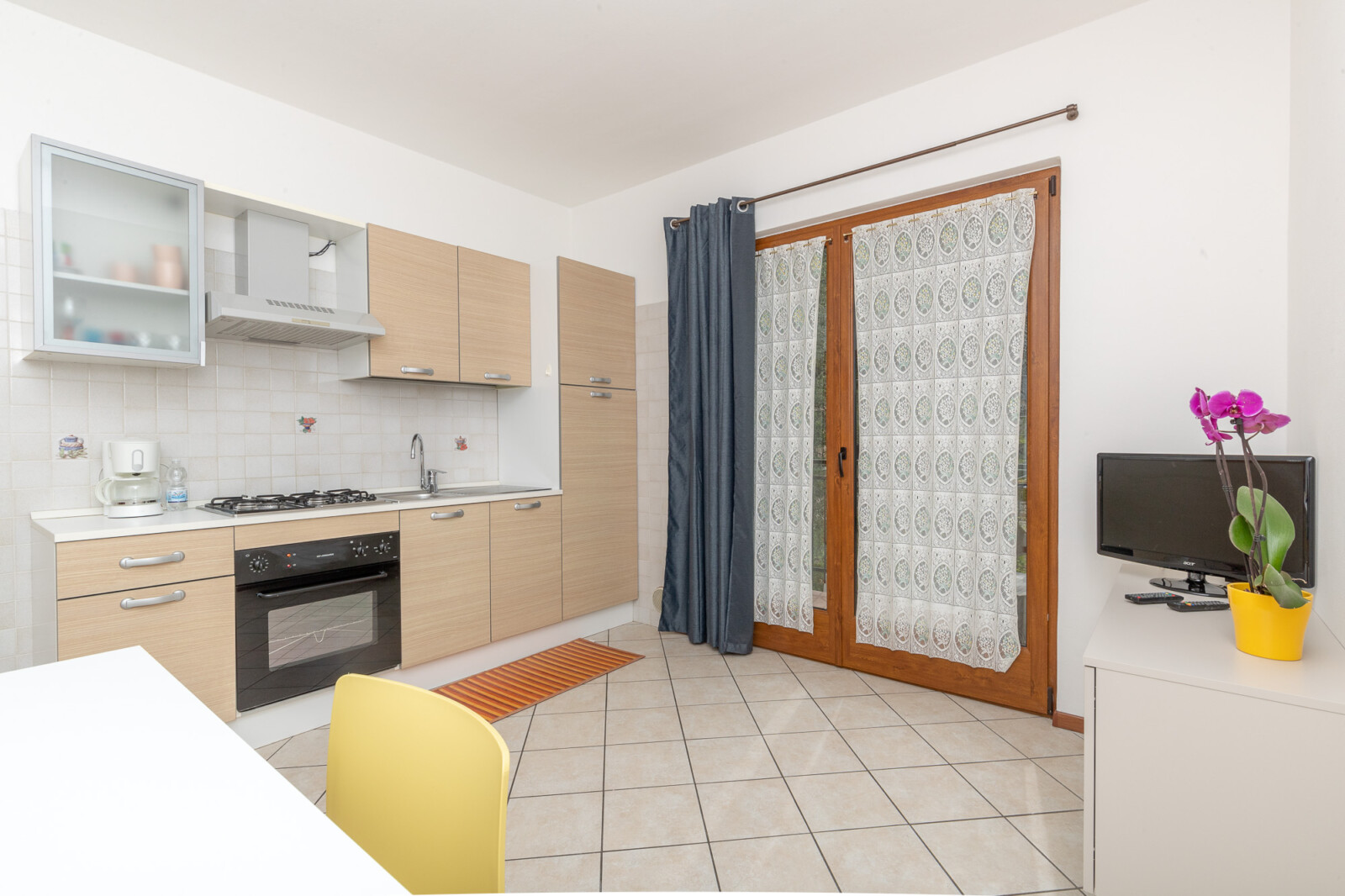 The apartment is spacious and furnished with simple but practical furniture. In the day room you will find a well-equipped kitchen area table, chairs and a sofa bed. The bedroom is large with a double bed.